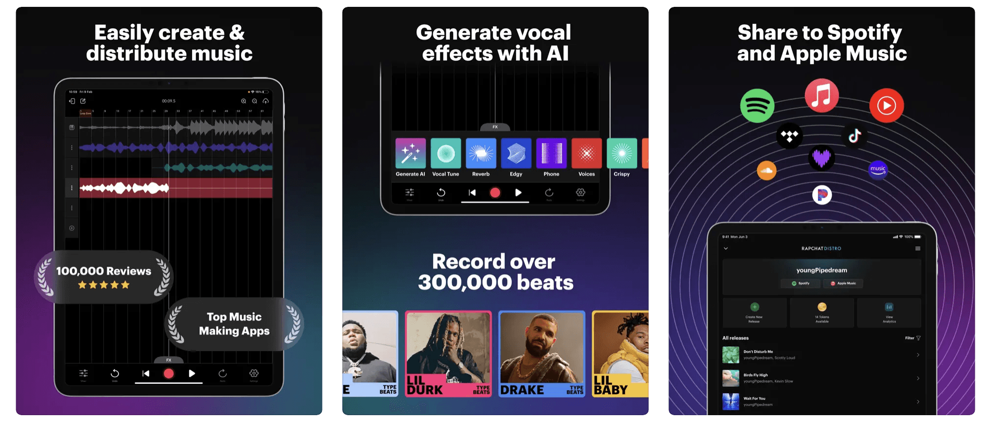 Distribute your music on Spotify, Apple Music, and 30+ platforms. Keep 100% of your royalties when you release with Rapchat Distro.